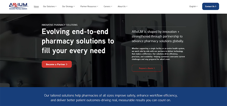 ARxIUM provides pharmacy automation solutions to improve efficiency and scalability across hospital, outpatient, long-term care and centralized pharmacy environments. With over 30 years of experience, it has a diverse portfolio. This includes automated dispensing cabinets, vertical pharmacy carousels, vial fillers, packaging systems, robotic IV automation and high-volume prescription fulfillment.